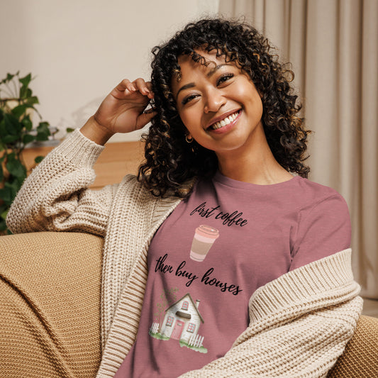 • First Coffee Then Buy Houses Tee — Women’s Relaxed Fit